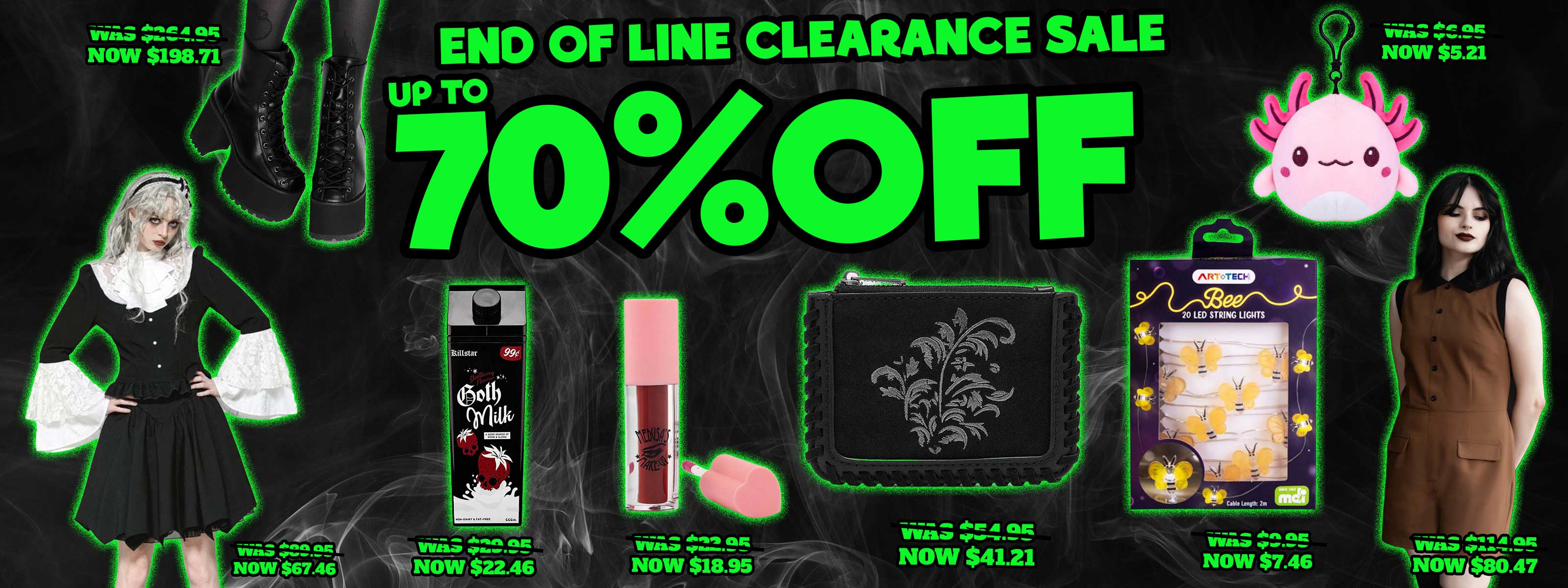 Build your signature look from head to toe with our range of gothic boots, platform shoes, alternative dresses, band tees, fishnet stockings, chokers, and body jewelry. We also stock cult-favorite hair dyes, goth cosmetics, Korean skincare, vegan beauty products, and alternative homewares to complete your dark aesthetic lifestyle.