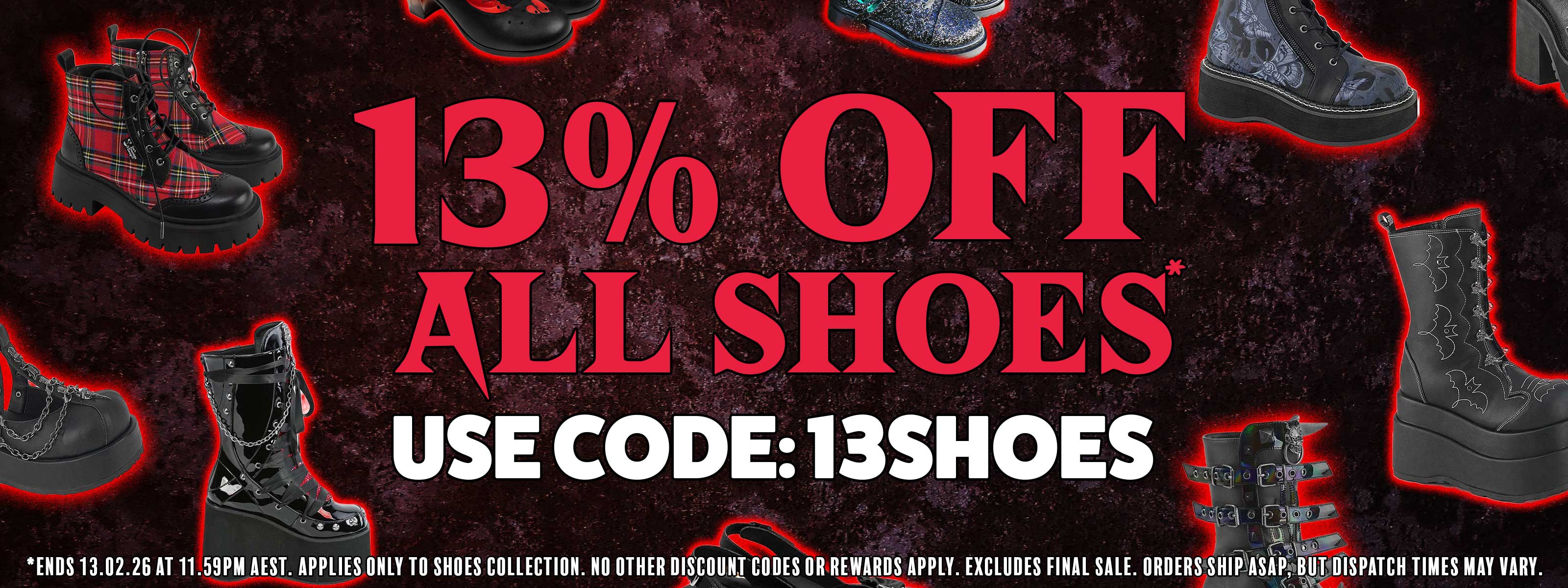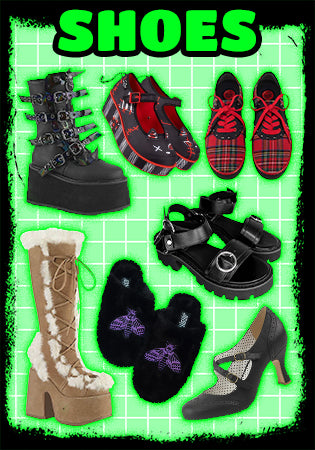 Build your signature look from head to toe with our range of gothic boots, platform shoes, alternative dresses, band tees, fishnet stockings, chokers, and body jewelry. We also stock cult-favorite hair dyes, goth cosmetics, Korean skincare, vegan beauty products, and alternative homewares to complete your dark aesthetic lifestyle.
