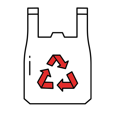 We receive clothing and stock in plastic bags, but we do not use any plastic bags in the office that are not recycled.