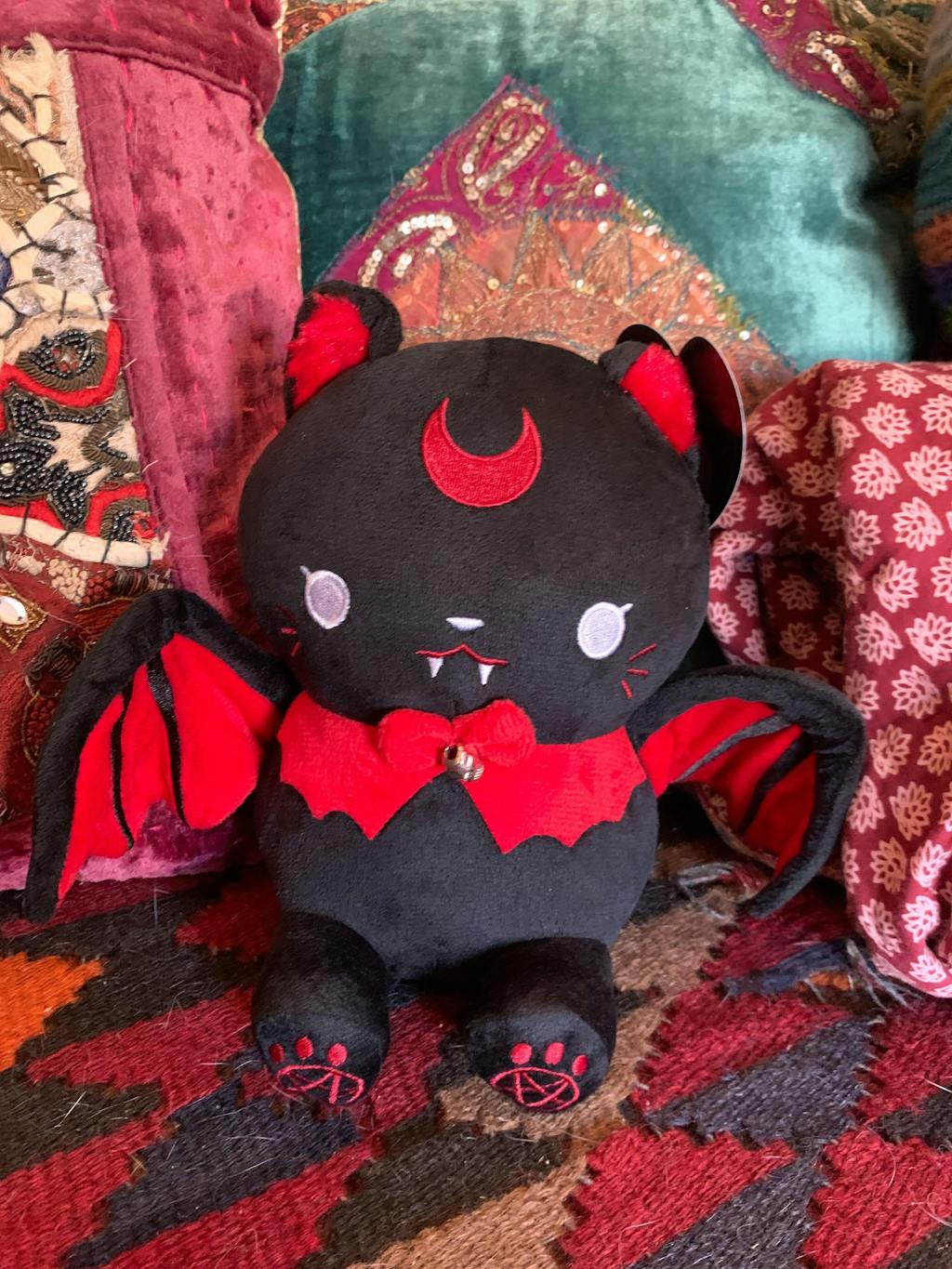 Introducing the cutest little Bat Cat plushie, perfect for squishing, displaying or snuggling up with during a spooky movie. Beserk Plushies are super soft, structured and come in a personalised clear storage bag.Ā