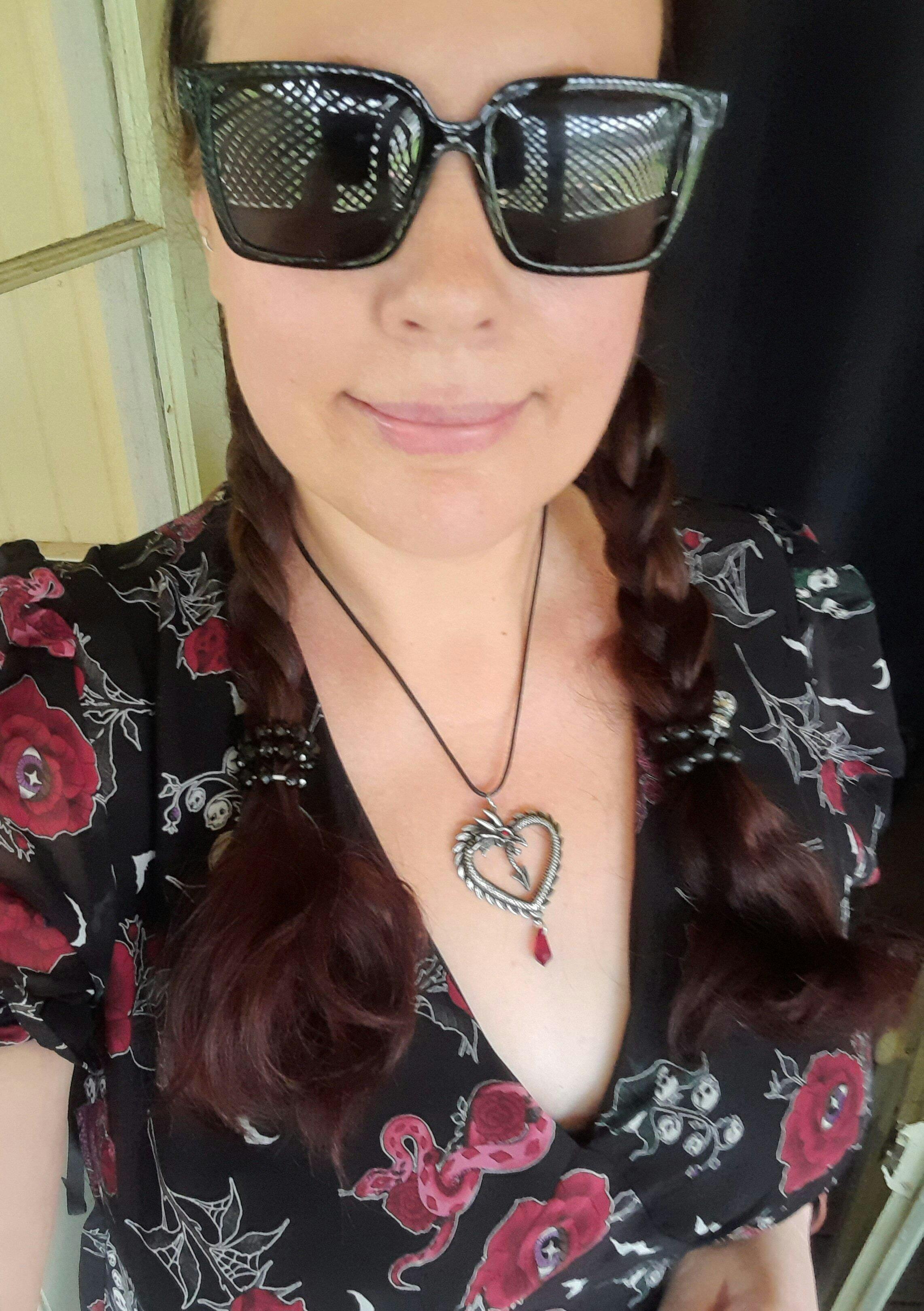 Embrace the darkness with The Blooming Elle Dress. This chiffon midi dress is made from a bold black base, decorated with spooky floral artwork in dark red and white. The V-neckline skims the chest and gathers into the fitted underbust waist panel.