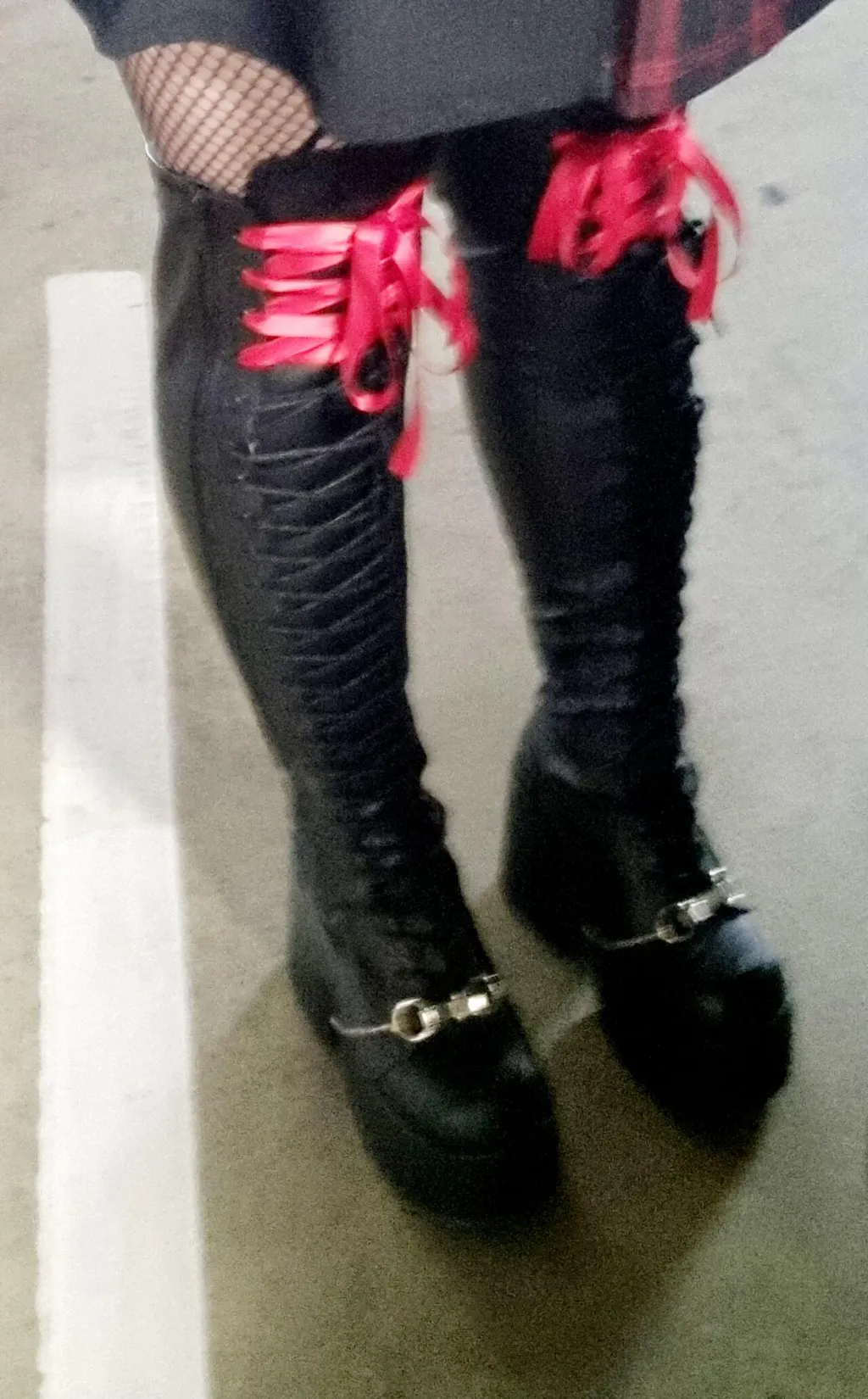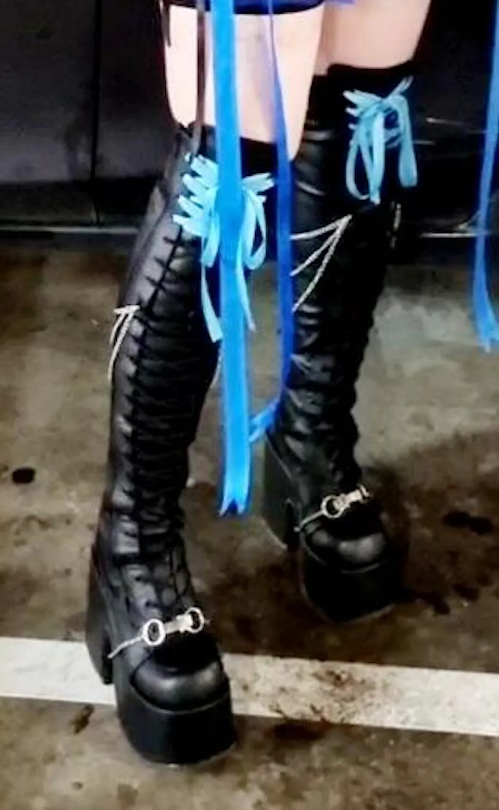 Black Lace-Up Thigh High Boots