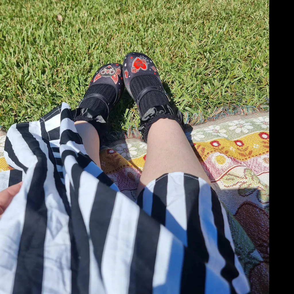 Featuring signature mary-jane style canvas lined velvet upper, a slightly wedge-shaped synthetic rubber sole for back support and a cushioned innersole, Chocolaticas are renowned for their comfort. Easy clean, easy wearing, quirky and fab!