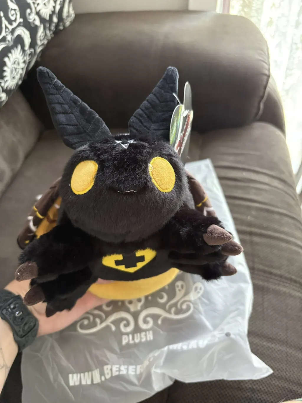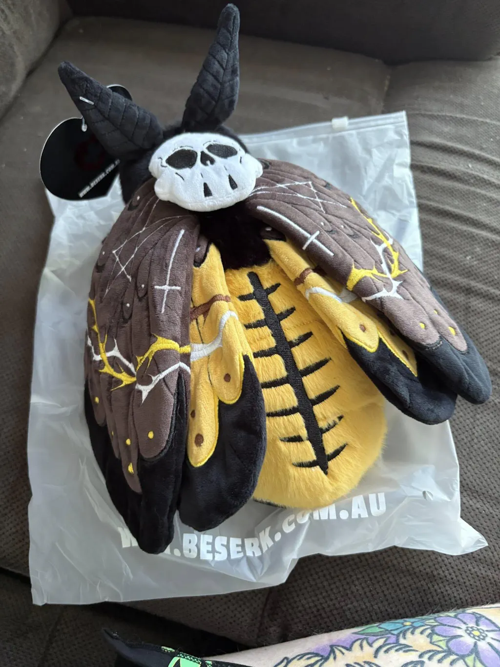 Introducing the cutest little Death's Head Hawkmoth plushie, perfect for squishing, displaying or snuggling up with. Beserk Plushies are super soft, structured and come in a personalised clear storage bag.