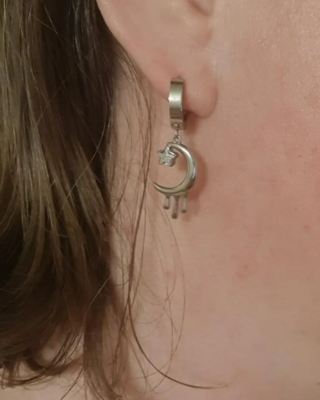 The huggie style ensures a snug, comfortable fit while the dangling moon and star details add movement and charm. Embrace the night sky with these celestial-inspired earrings, perfect for adding a mystical touch to any outfit!