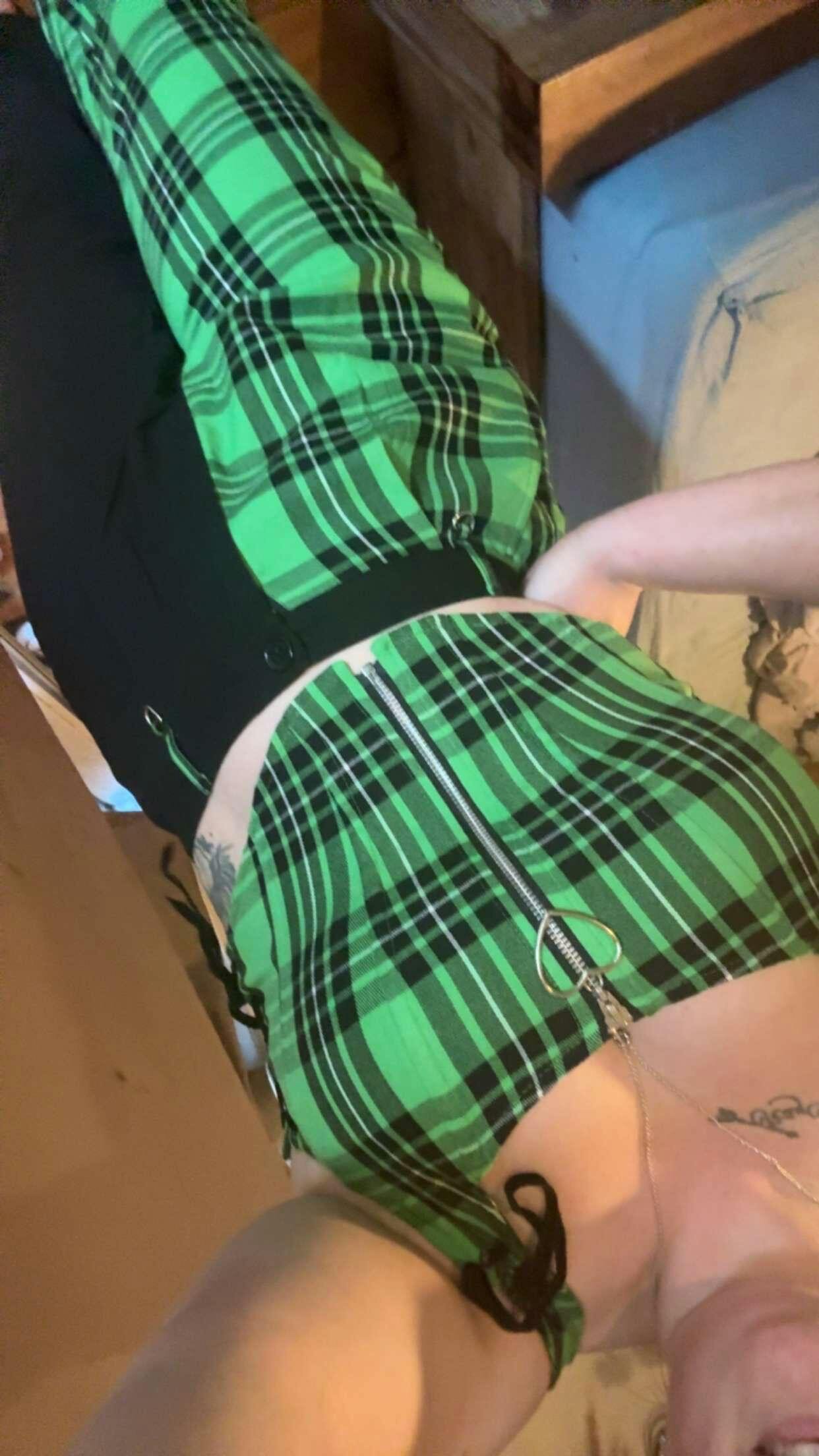 These unique trousers feature a striking split design—one half in a bold green tartan and the other in black, creating a head-turning contrast. The tapered shape gives a flattering fit, while the detachable black half-pleated skirt panel clips onto the waist for a versatile layered look. The black waistband is accented with tartan belt loops for an extra touch of style. Functional side pockets and a zip and button fastening at the center front complete the design. Slightly cropped above the ankle, these pants are the perfect mix of edgy and classic!