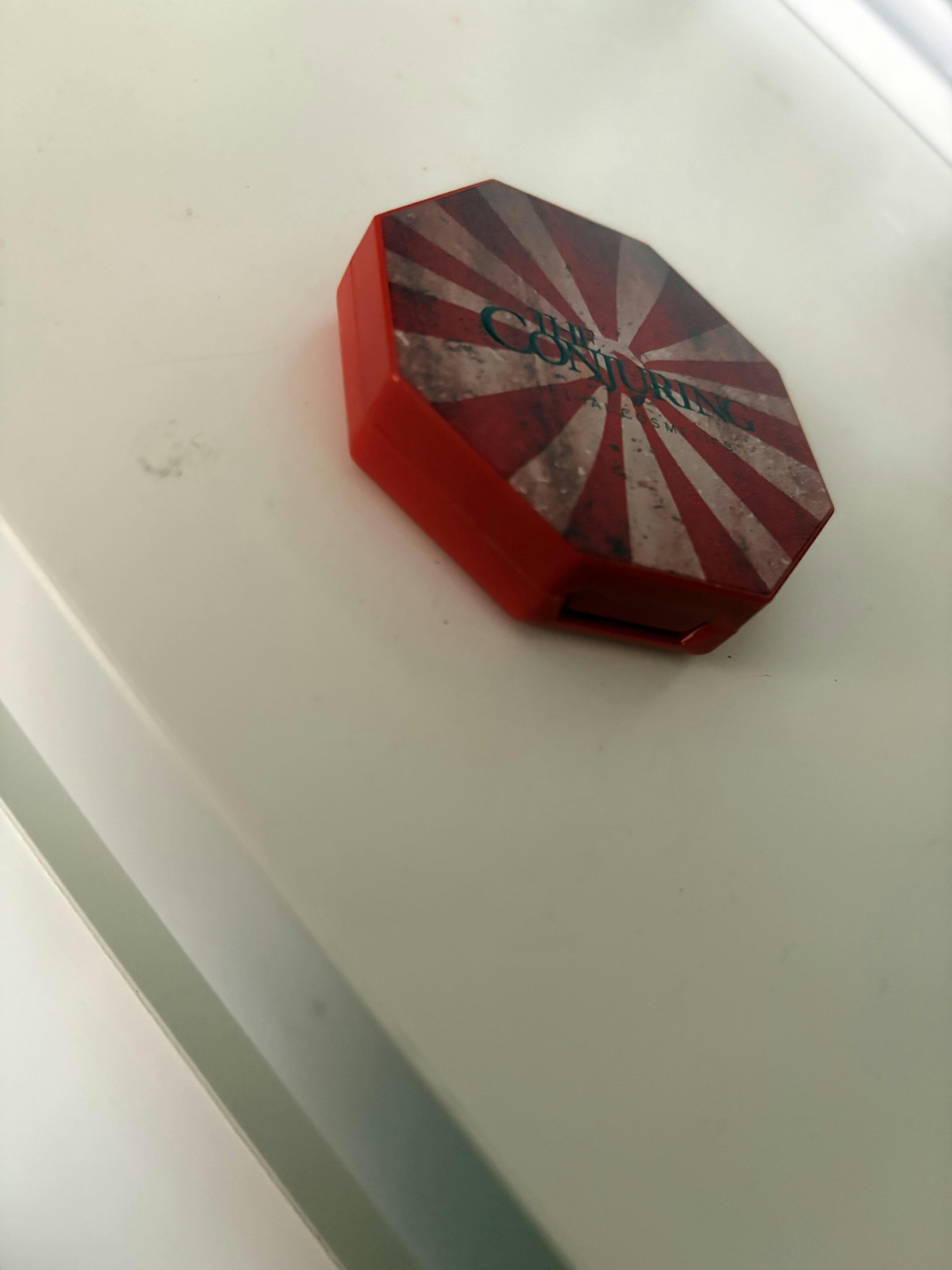 This spooky highlighter is inspired by the music box from the first Conjuring movie and features a custom red octagonal shaped compact with a spiral design on the mirror. The highlighter has a translucent base with a champagne-peach duochrome finish that compliments all skin tones. But beware: once the music stops, you will see him in the mirror standing behind you!
