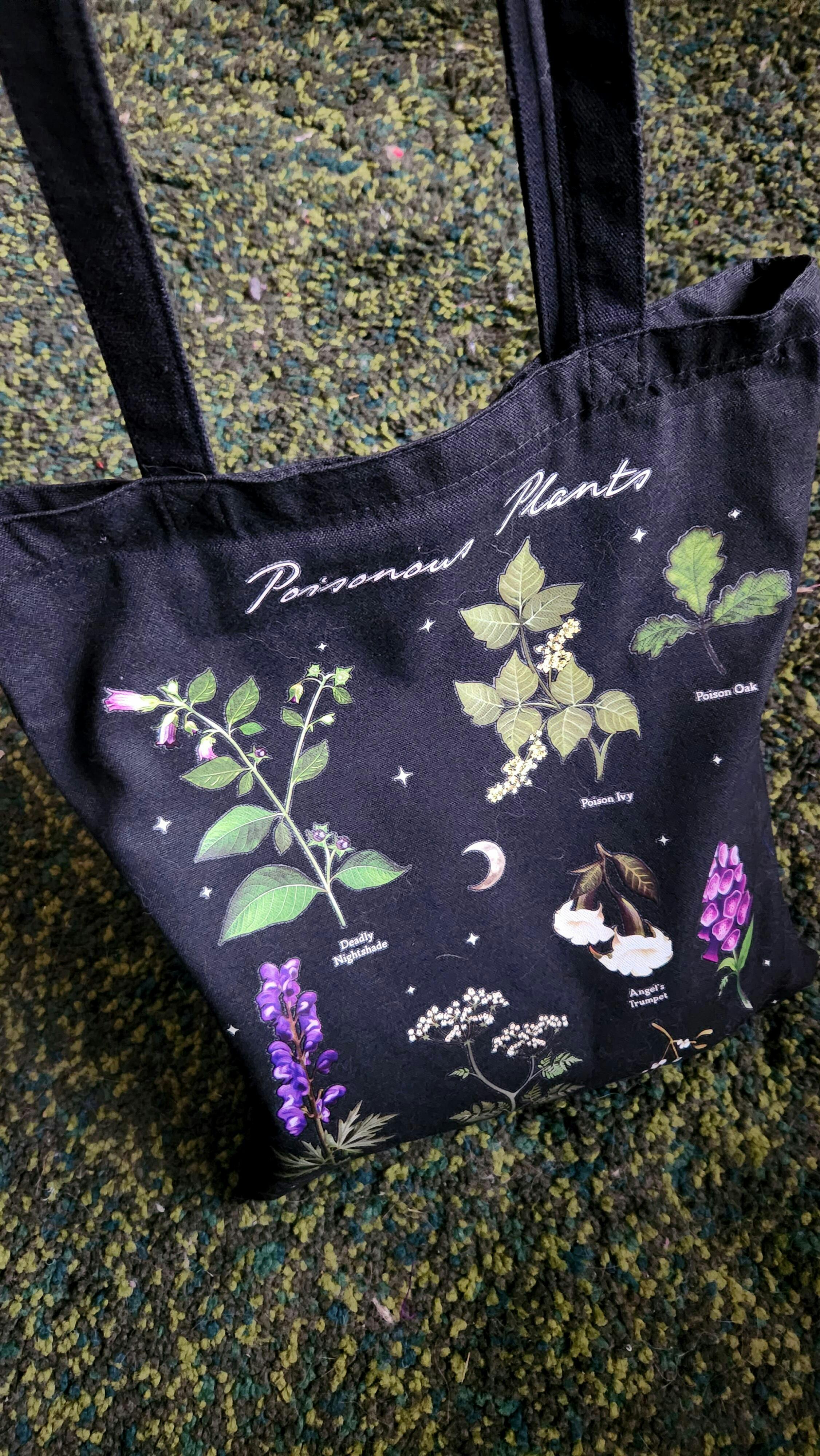 Make a statement with this eco-friendly, reusable polycotton tote bag featuring an intricate poisonous plant design. Perfect for shopping trips, errands, or casual outings, it combines practicality with stunning artistry!