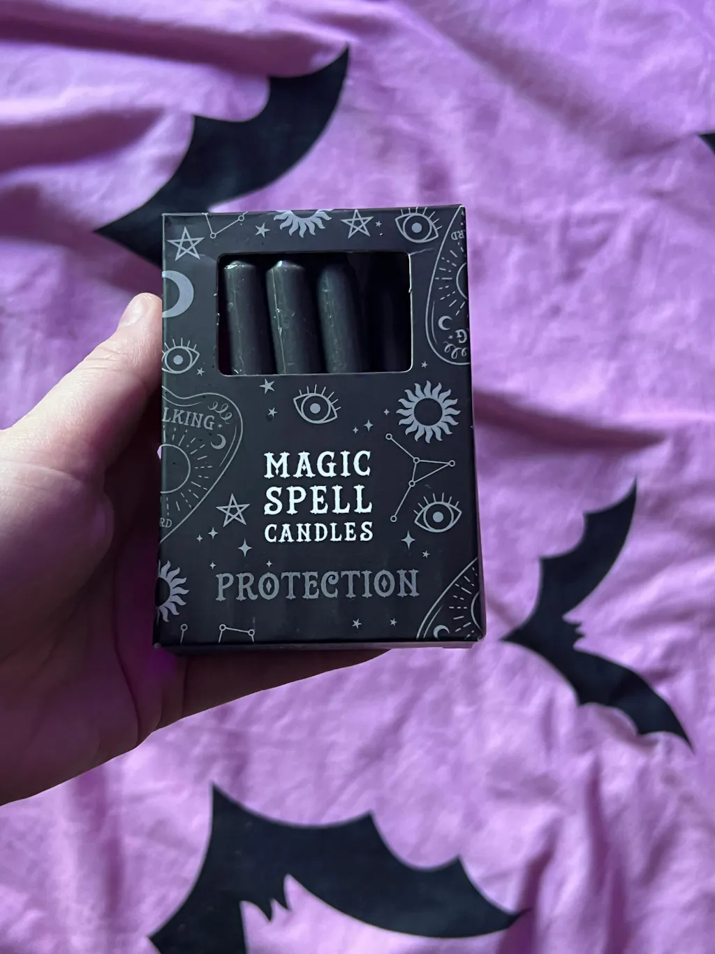 A sleek and deadly black pack of 12 spell candles for protection rituals. Each candle in this witchy box measures approximately 4" and has a white wick. A great gift for yourself, or for the witch in your life.