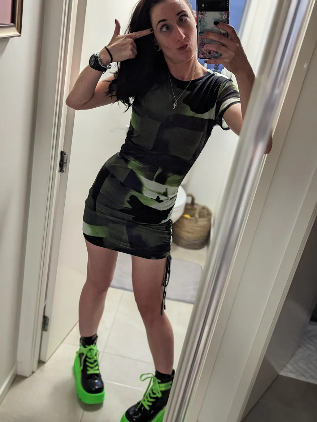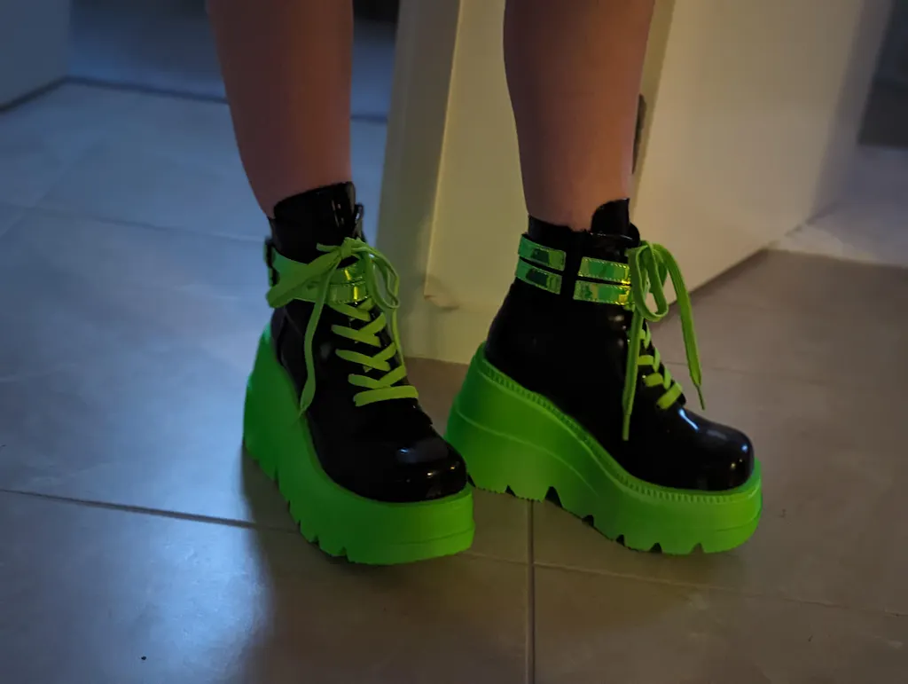 Patent Black & UV Neon Green Platform Lace-Up Ankle Boots