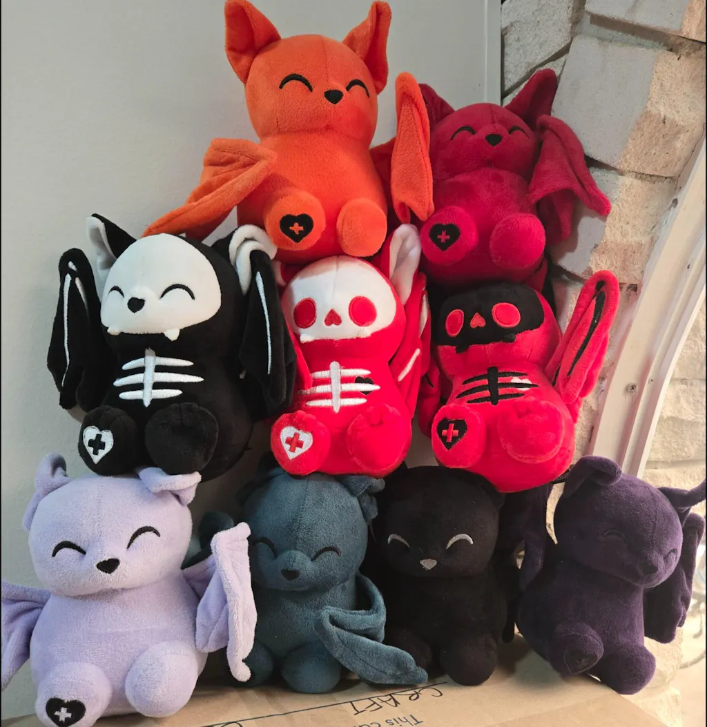 There are 5 exclusive versions of Skele Koumori-Chan available, with an embroidered red heart! This lucky version also includes a $30 Gift Voucher! Simply contact us and let us know you're the new owner of a Chase Skele Koumori Chan, and we'll send you a Gift Voucher! Once they have found their forever homes, they won't be available again!