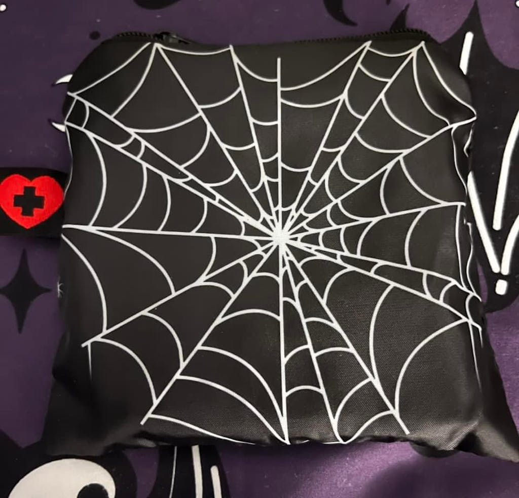 The spacious interior and durable handles make it ideal for carrying books, groceries, or anything else you need to tote around. Plus, it folds up neatly and fits inside its matching zipper bag, making it easy to take with you wherever you go. So whether you're headed to the library, the market, or just out and about, show off your love for all things spooky and stylish with the Spider Love Reusable Tote Bag.
