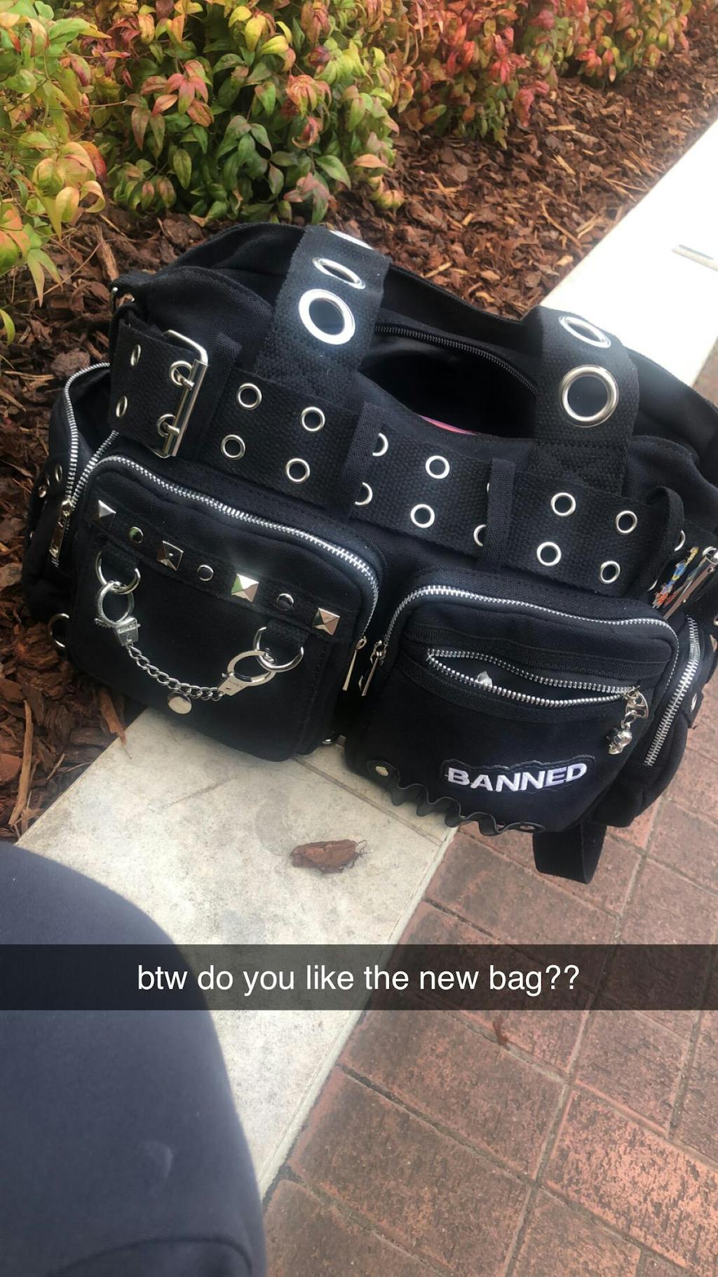 The dream bondage style grunge goth handbag, with handcuff charm details on the front pocket.