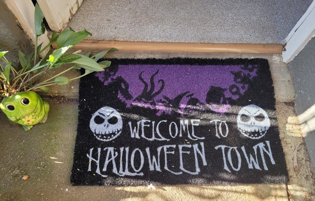 Greet your guests to your twisted abode with this officially licensed Disney doormat featuring artwork of Jack Skellington and friends!