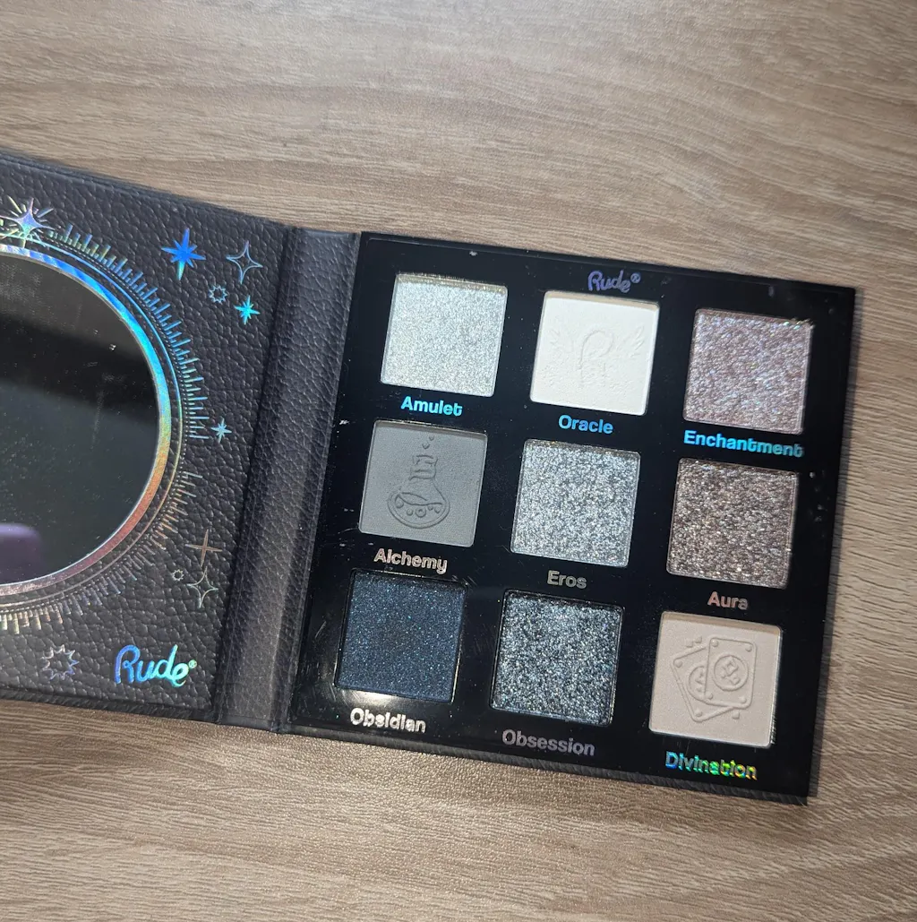 Ingredients: Eyeshadows (Oracle, Alchemy, Obsidian, Divination): Mica, Magnesium Stearate, Polyethylenewax, Silica, Ethylhexyl Palmitate, Caprylic/Capric Triglyceride, Dimethicone, Dimethicone/vinyl dimethicone crosspolymer, Polyisobutylene, Bis-Diglyceryl Polyacyladipate-2, Tocopheryl Acetate, PHENOXYETHANOL, Ethylhexylglycerin. Pigments (Amulet, Enchantment, Eros, Aura, Obsession):Mica, Titanium Dioxide, Tin Oxide, Synthetic Fluorphlogopite, Titanium Dioxide, Tin Oxide, Synthetic Fluorphlogopite, Titanium Dioxide, Silicon Oxide, Tin Oxide, Mica, IRON OXIDES (CI77491), Calcium Aluminium Borosilicate, Titanium Dioxide, Tin Oxide, Titanium Oxide (CI77891), Aluminum Hydroxide, Iron Oxide Red (CI 77491), Iron Oxide Yellow (CI 77492), Iron Oxide Black (CI77499)